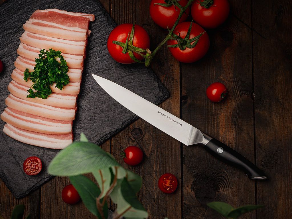 Machen Sie das Schneiden einfacher, machen Sie das Leben einfacher – mit einem ONYX COOKWARE™ Tranchiermesser.