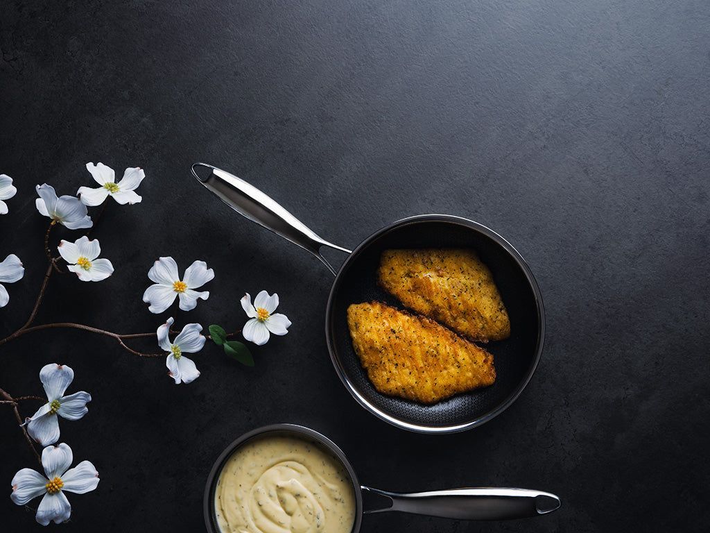 Bei unserer ONYX COOKWARE™ Pfannen und Töpfe sorgt das innovative lasergeätzte Design dafür, dass Sie genauso knusprig anbraten können wie mit einer hochwertigen Grillpfanne aus Gusseisen.