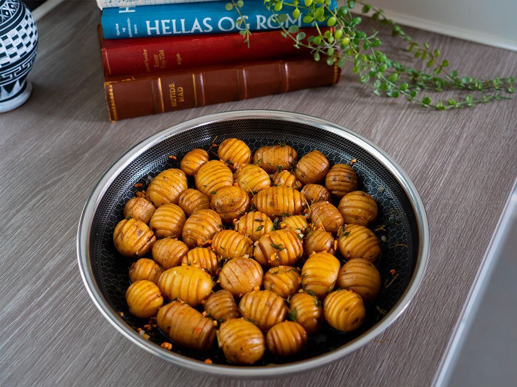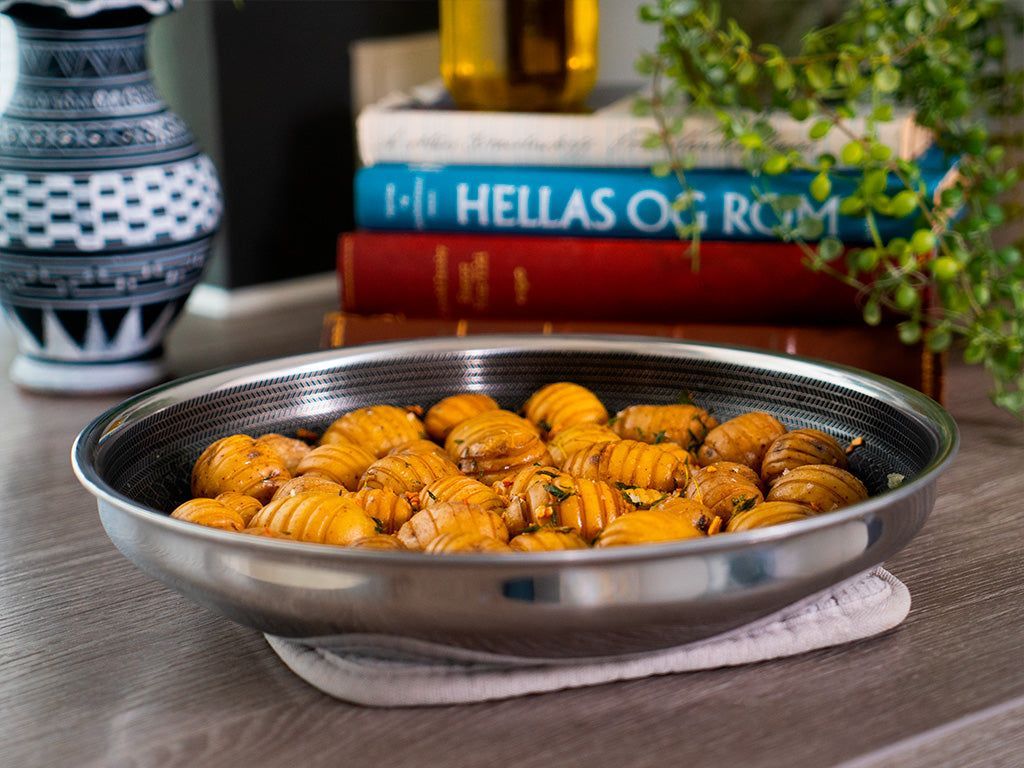 Nehmen wir an, Sie möchten die Bratpfanne in den Ofen stellen, stellen jedoch fest, dass Ihr Ofen ziemlich klein ist oder bereits mit anderen Dingen gefüllt ist und einfach keine Pfanne mit Griff hineinpasst. Ein weiteres Problem, das unsere grifflosen Bratpfannen lösen!