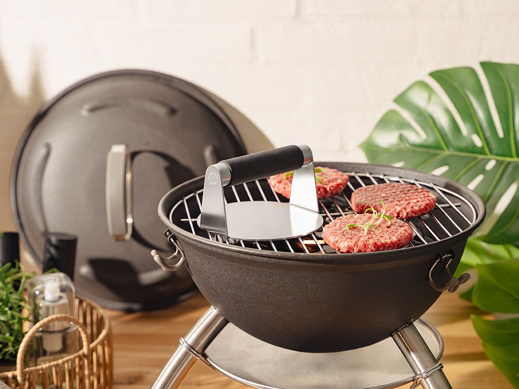 Ganz aus hochwertigem Edelstahl gefertigt, ist dieser Burger-Smasher darauf ausgelegt, die höchsten Standards an Haltbarkeit und Langlebigkeit in Ihrer Küche zu erfüllen. Seine robuste Konstruktion stellt sicher, dass er auch mit den härtesten Zutaten, von dicken Fleischpatties bis hin zu gestopften Burgern, mühelos fertig wird.