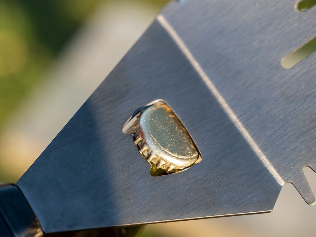 Und das Wichtigste: ein integrierter Flaschenöffner – damit Sie auf der Gartenparty mit Ihren Bieröffner-Fähigkeiten beeindrucken können.