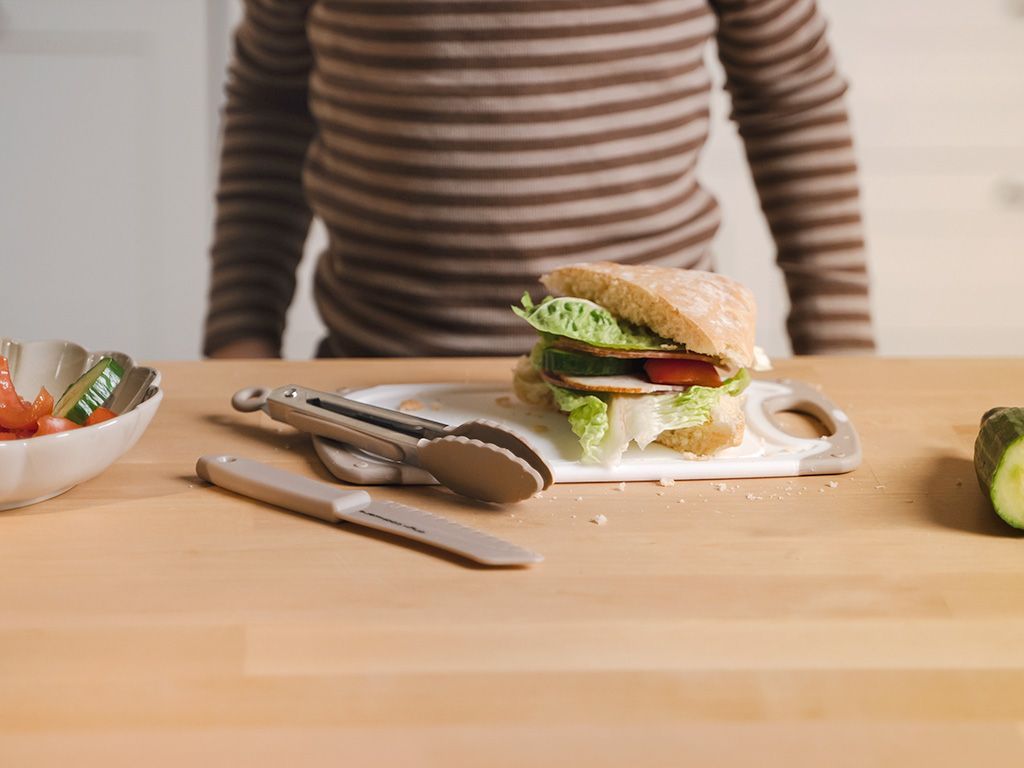 Dieses All-in-One-Set wurde entwickelt, um das Kochen in ein aufregendes Familienabenteuer zu verwandeln. Mit kindersicheren Messern, einem Wellenmesser, einem Schäler, einer Zange und einem Schneidebrett mit rutschfester Basis ausgestattet, stellt es sicher, dass dein kleiner Held mit Vertrauen und Sorgfalt Küchenfähigkeiten erlernen kann. Die Messer sind scharf genug, um Fleisch, Obst und Gemüse zu schneiden, aber nicht scharf genug, um Finger zu verletzen, was sie wesentlich sicherer als herkömmliche Messer macht.