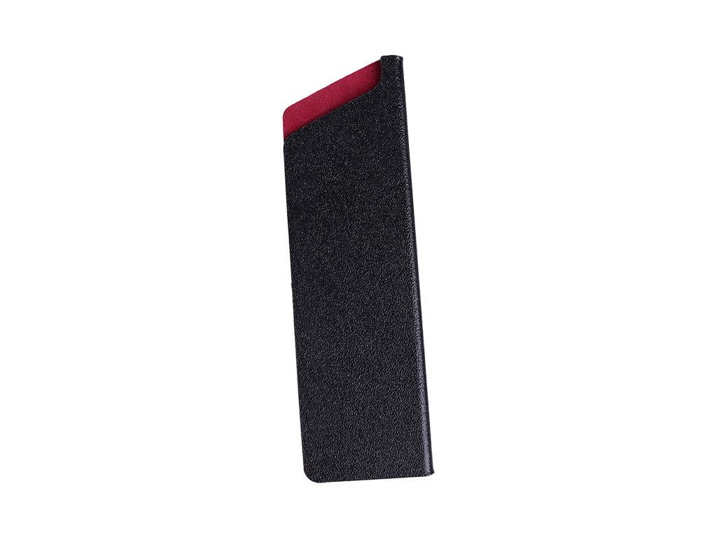 STILVOLLES DESIGN AUS SCHWARZEM POLYPROPYLEN MIT WEICHER ROTER INNENFLOCKUNG. ZWEI GRÖSSEN VERFÜGBAR, UM VERSCHIEDENE GRÖSSEN MESSER ZU PASSEN