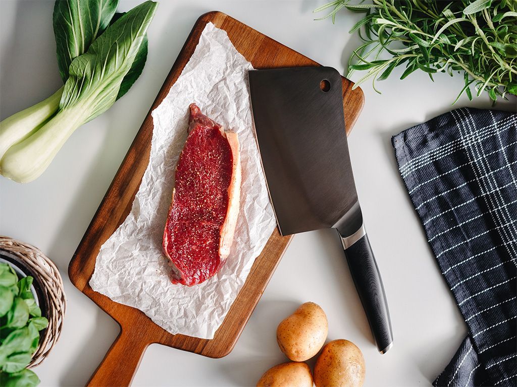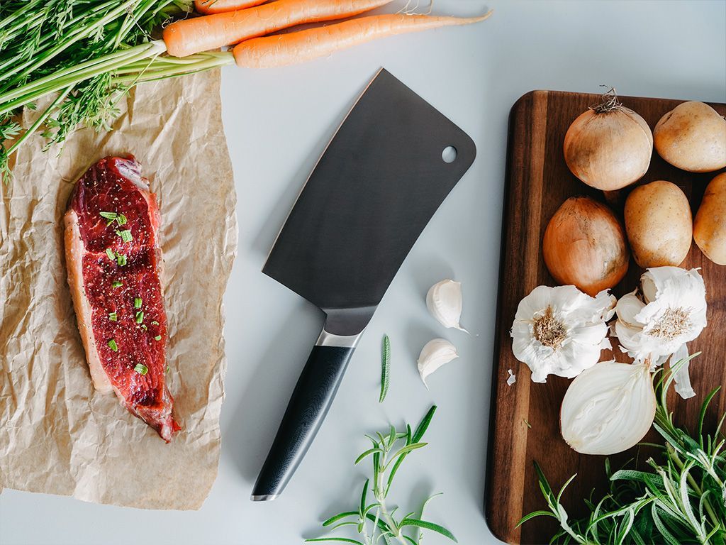 Das ONYX COOKWARE™ HACKMESSER ist mit seinem ergonomischen Griff auf Komfort und einfache Manövrierbarkeit ausgelegt, sodass Sie Gemüse und Fleisch stundenlang ohne Beschwerden zerkleinern können!