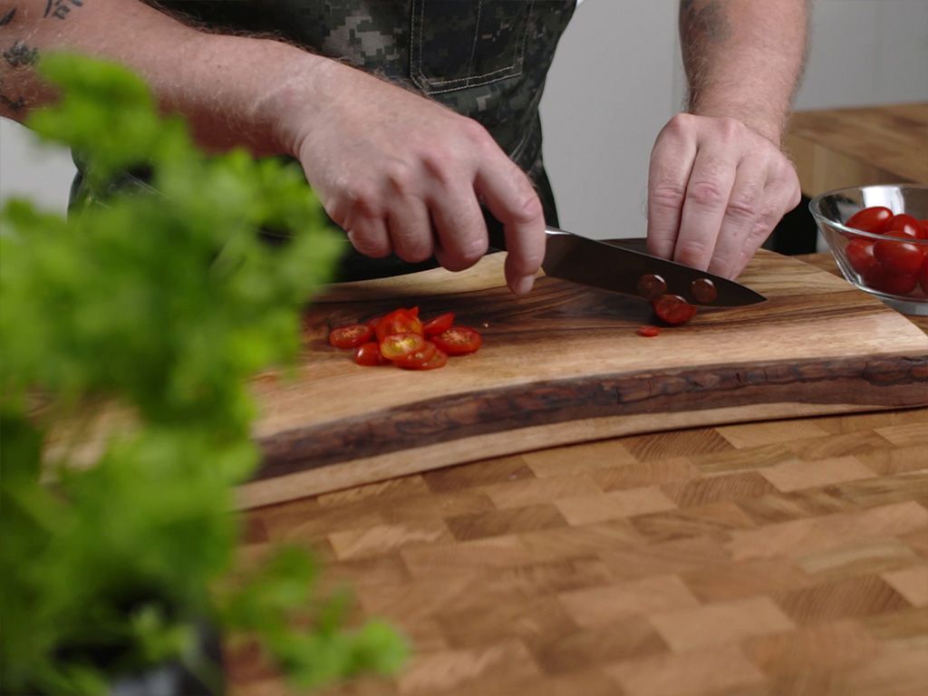 Das ONYX COOKWARE™ Universalmesser eignet sich gut zum Hacken und Schneiden von kleineren Lebensmitteln und Gemüse und ist ein ideales Werkzeug für die Lebensmittelzubereitung. Es hat viele Eigenschaften eines Kochmessers, aber seine kompaktere Größe macht es zu einem nützlichen Werkzeug bei der Arbeit mit kleineren Lebensmitteln, da das Universalmesser präzisere Schneidearbeiten ermöglicht. Wenn Ihr ONYX COOKWARE™ Kochmesser also ein wenig zu groß für den Job ist, sollten Sie stattdessen zum Universalmesser greifen.