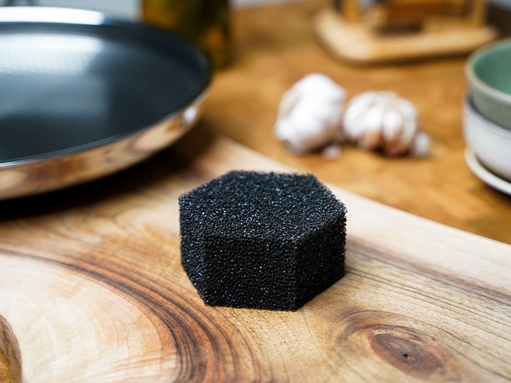 Sehr guter Schwamm, die Pfannen und Töpfe machen sich sehr gut sauber
