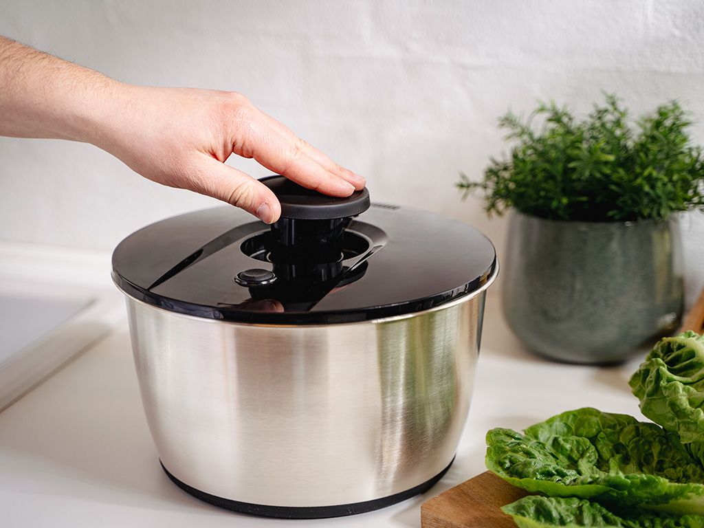 Doch diese Schleuder kann mehr als nur Trocknen – sie dient auch als Misch- und Servierschüssel. Sobald das Gemüse trocken ist, gib einfach deine Zutaten hinzu und mische deinen Salat direkt in der Schüssel – ganz ohne zusätzliches Geschirr. Die ONYX COOKWARE™ SALATSCHLEUDER AUS EDELSTAHL begleitet dich vom Spülen bis zum Servieren – und das ohne Küchenchaos.