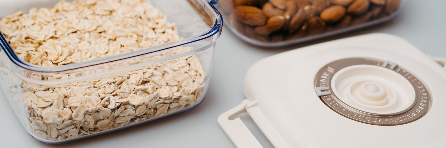 Im Vakuumbehälter sind Ihre Lebensmittel bis zu fünfmal länger haltbar. Verwenden Sie die Vakuumpumpe, um ein Vakuum zu erzeugen – und in Sekundenschnelle haben Sie vakuumverpackte Lebensmittel zur Hand, wann immer Sie sie brauchen. Das clevere Design ermöglicht es, die Behälter übereinander zu stapeln und so mehr Platz im Kühlschrank für Ihre anderen Lebensmittel zu schaffen. Auf der Oberseite des Deckels befindet sich eine manuelle Uhr mit Datum und Wochentag, so dass Sie leicht feststellen können, wann die Lebensmittel vakuumiert wurden.