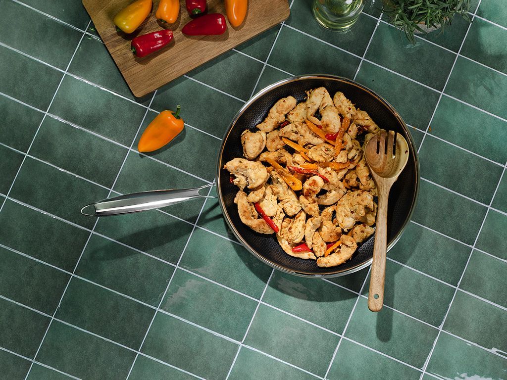 Die Pfanne erhitzt sich dank Aluminiumkern blitzschnell und verteilt die Wärme absolut gleichmäßig – selbst bei dieser großen Fläche. Die Edelstahl-Wabenstruktur in Kombination mit der keramischen Antihaftbeschichtung sorgt dafür, dass nichts anhaftet, selbst bei minimalem Öl. Steaks bekommen eine perfekte Kruste, Gemüse bleibt knackig, und auch empfindliche Speisen wie Fisch oder Omelett gelingen mühelos.