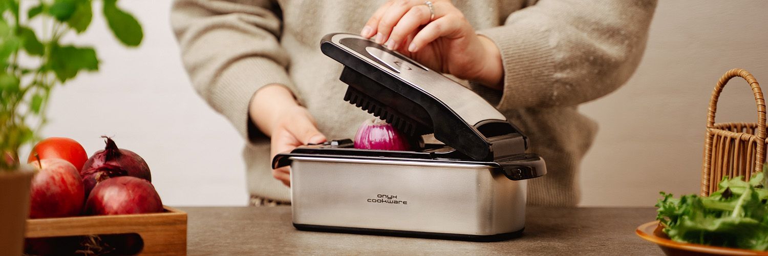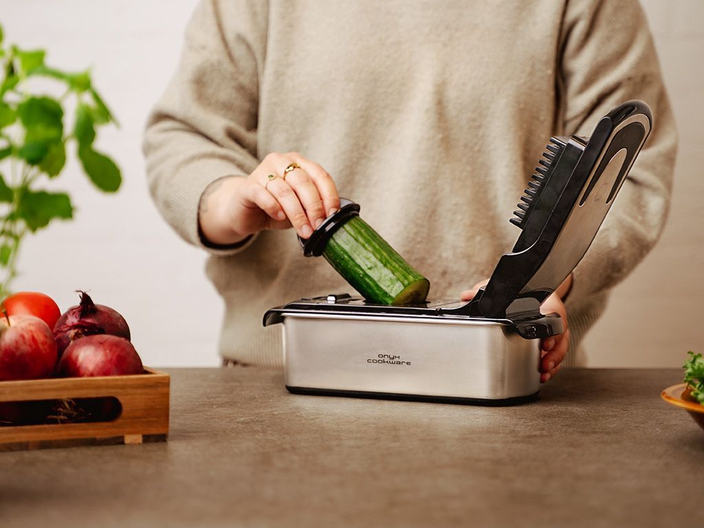 Der kleine Würfeleinsatz eignet sich ideal zum Schneiden von Zwiebeln, Paprika und anderem kleingeschnittenen Gemüse in gleichmäßige Stücke. Das spart Zeit und sorgt für gleichbleibende Ergebnisse. Für größere Gemüse wie Kartoffeln und Karotten ist der größere Einsatz perfekt – ideal für Eintöpfe oder hausgemachte Pommes frites.
